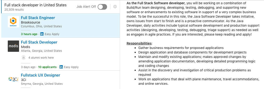 Here’s an example of a Full Stack Developer job offer on LinkedIn: