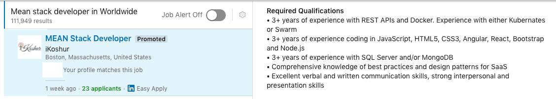 For instance, here’s an example of a MEAN Stack Developer job offer: