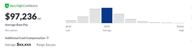 The average salary presented by Glassdoor is visibly higher and stands at $97,236 per year.